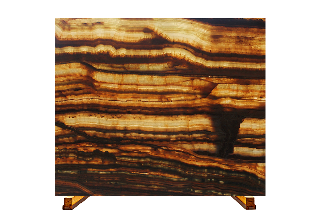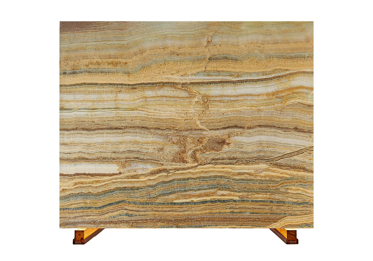 ظاهر و طرح: رگههای طبیعی و موجدار و نوارهای افقی در سراسر اسلب. عبور نور کامل